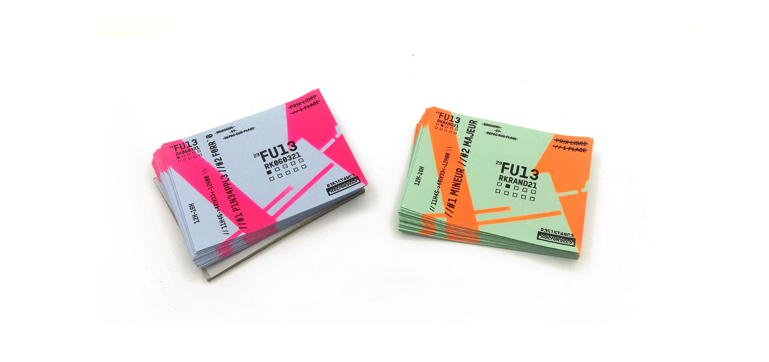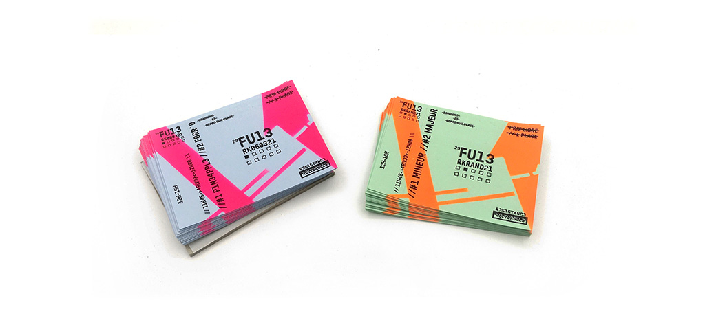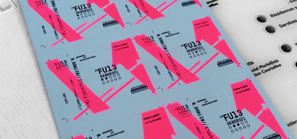 Participant à quelques unes de ces rencontres j’ai eu l’occasion de concevoir une billetterie à l’aide d’une imprimante laser N&B, de papier 120gr bleu et vert pastel et d’une bombe rose et orange fluo. Un peu de confection graphique, un pochoir et zou : une billeterie LeadSpeak pour le hack culturel !